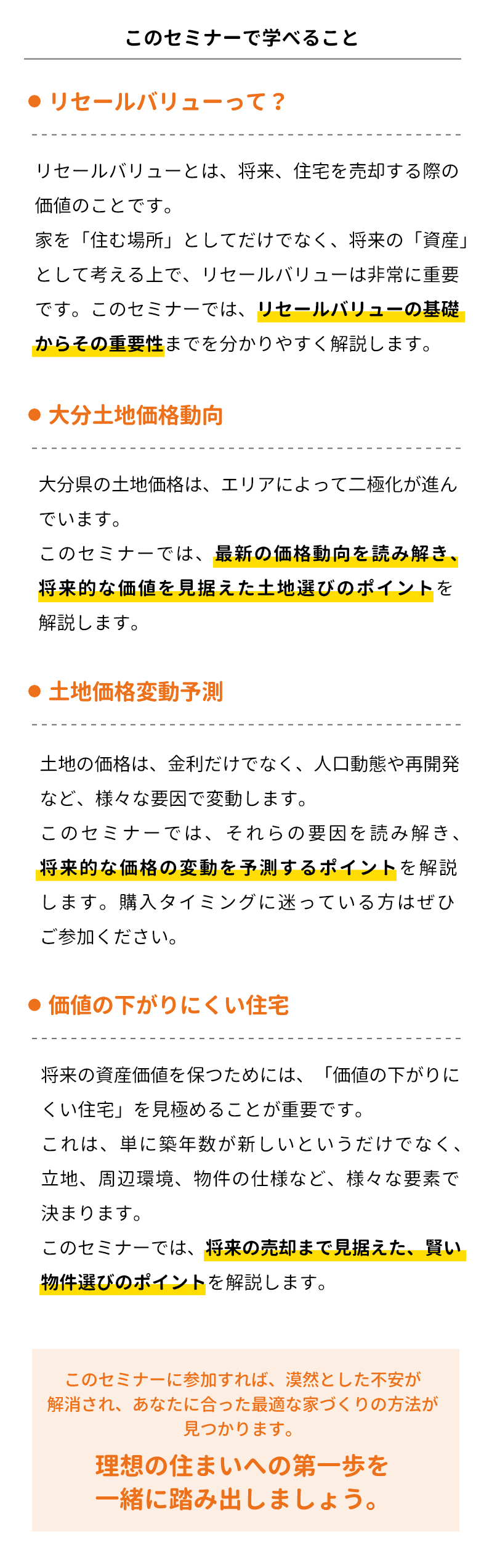 将来も安心!価値の下がりにくい家選びセミナー~リセールバリューを重視した賢い住宅購入~