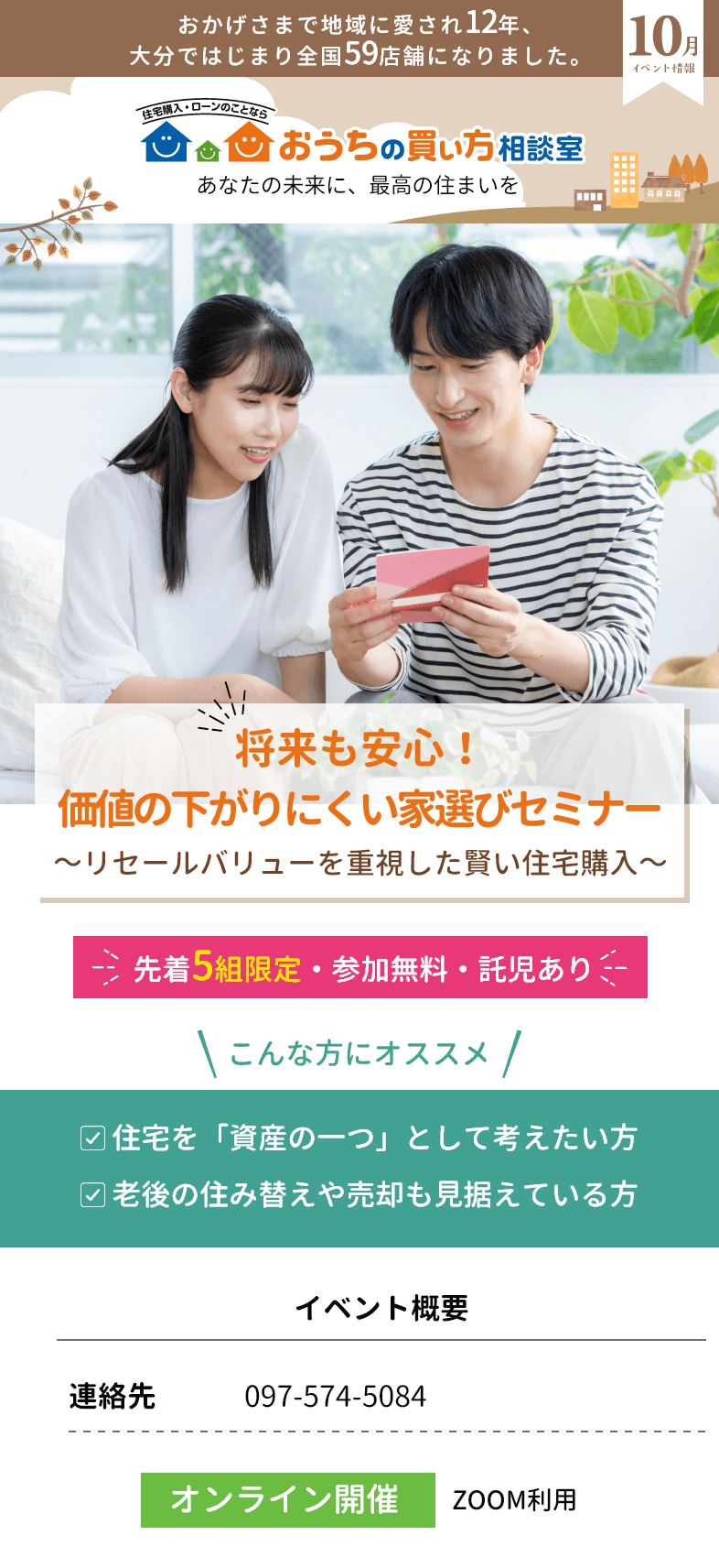 将来も安心!価値の下がりにくい家選びセミナー~リセールバリューを重視した賢い住宅購入~