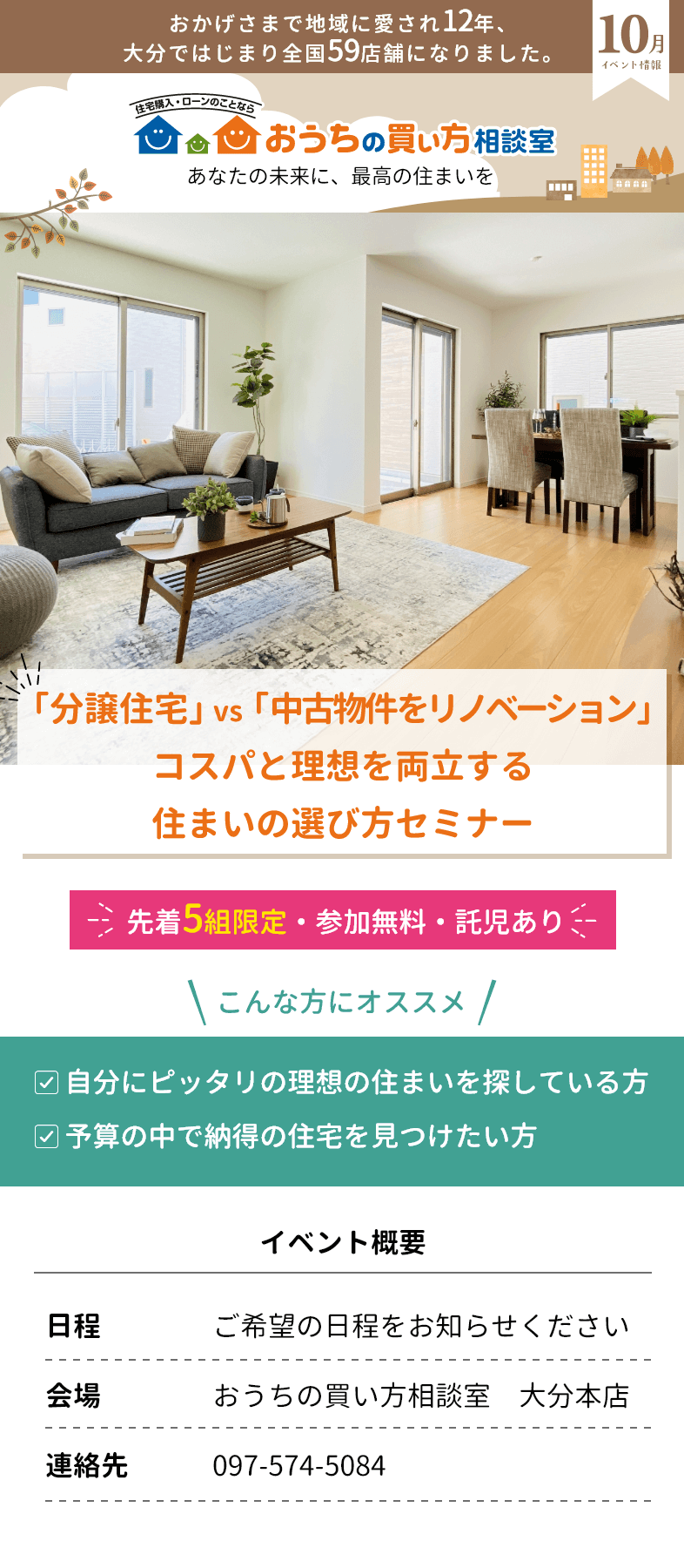 「分譲住宅」vs「中古物件をリノベーション 」コスパと理想を両立する住まいの選び方セミナー